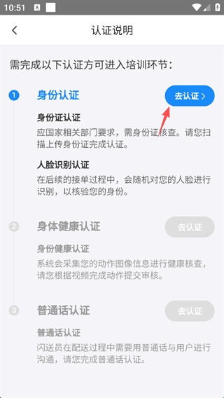 6、随后进行身份认证,点击屏幕右上角的“去认证”。