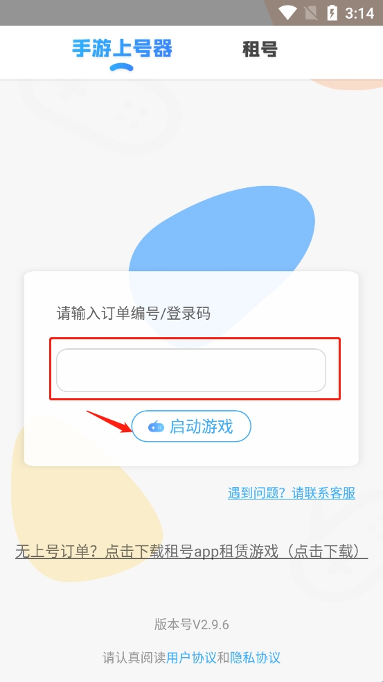 6、进入“手游上号器”之后输入“订单编号/登录码”,再点击“启动游戏”即可。