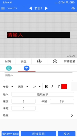 1、打开LED魔宝App新建一个节目,并选择文本中的文本特效将其设置为静态