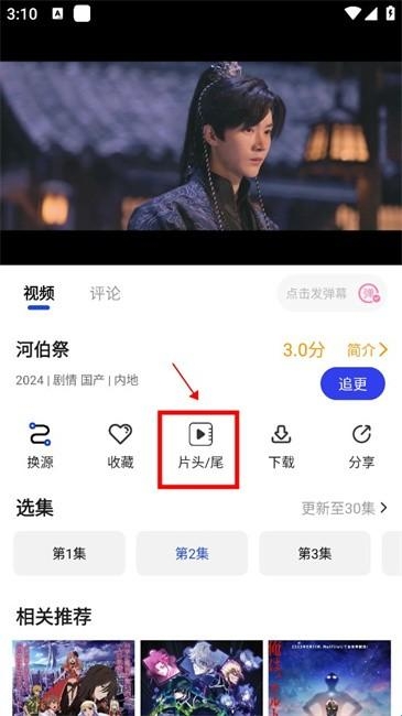 1、进入app找到想要观看的作品后,点击“片头/尾”