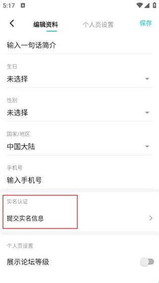 3、在编辑资料下找到提交实名信息;