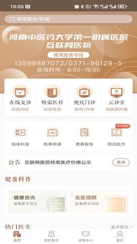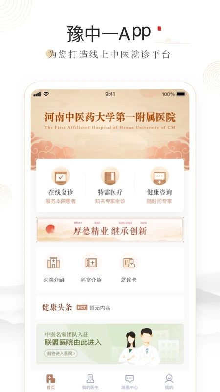 豫中一app是河南中医药大学第一附属医院打造的便携就医app。软件利用互联网信息服务,各大名医专家为患者提供线上服务,为患者提供提供极大的就医便利,给患者带来完美的就医体验,患者还可在线查询报告、进行图文或视频问诊。