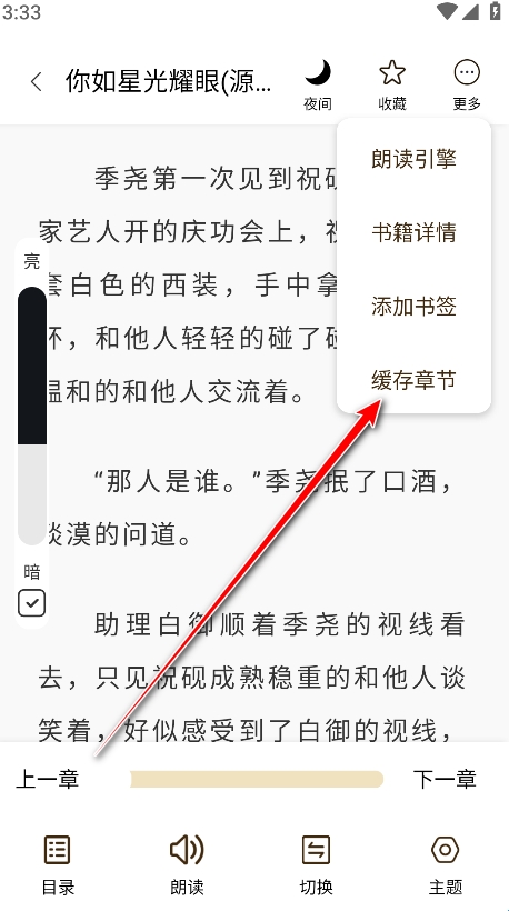 4、点击缓存章节。