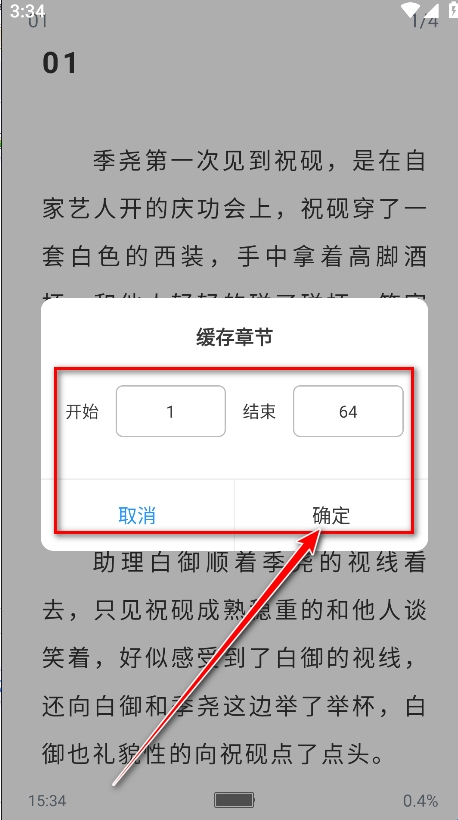 5、输入开始章节和结束章节,然后点击确定即可。