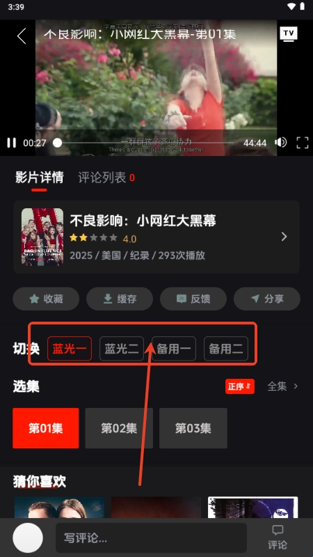 6、若是当前的播放源有问题,可以点击切换其他播放源。