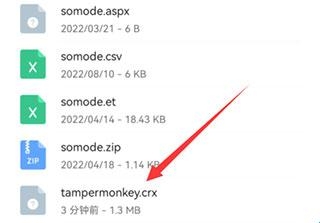 6、随后在文件管理中找到并打开之前发送来的油猴插件文件。