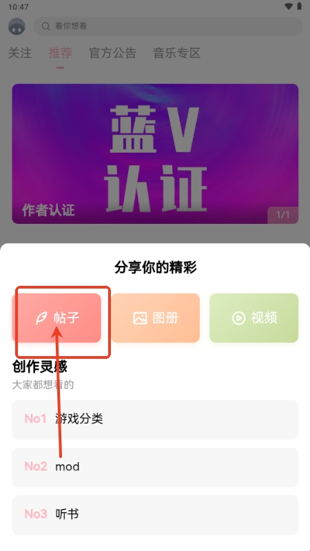 2、点击发布帖子,这里可以选择分类,MOD,还有软件;