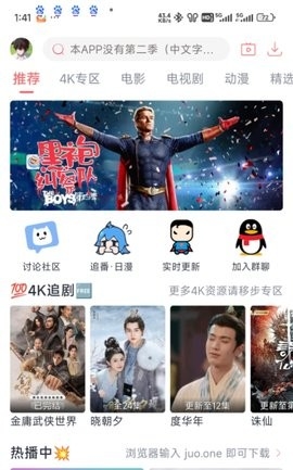 影视资源搜索:提供热播影视资源,用户可搜索并观看各类影片。