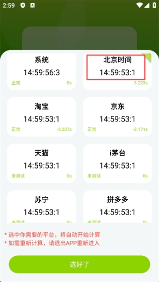 4、可以看到北京时间经过校准,发现系统时间快了3.222秒。