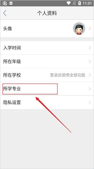 3、再点击所学专业;