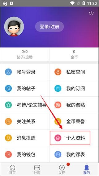 2、如果没有登陆,需要进行登陆,登陆成功后,找到个人资料;