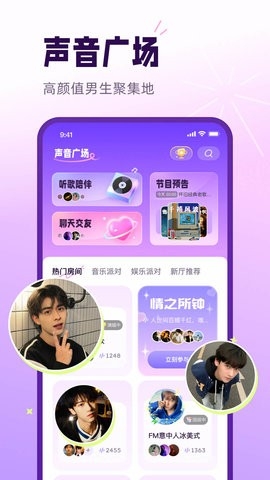 2、实时语音功能允许用户加入各种风格的语音房,与多才多艺的小哥哥畅聊无阻。为用户提供了一个释放压力、畅所欲言的平台,还让他们在这里找到真实的自己。