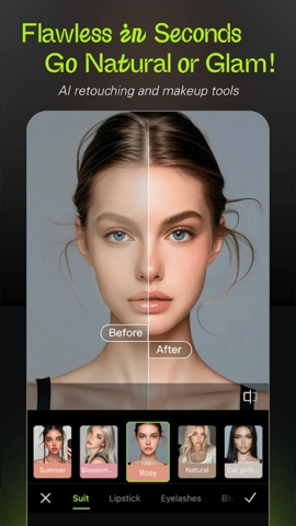 一键操作,拥有高级质感肤质,自然细腻不假白,轻松修出好肤色。