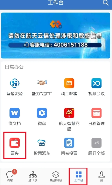 航天云信APP-工作台-日常办公-票夹