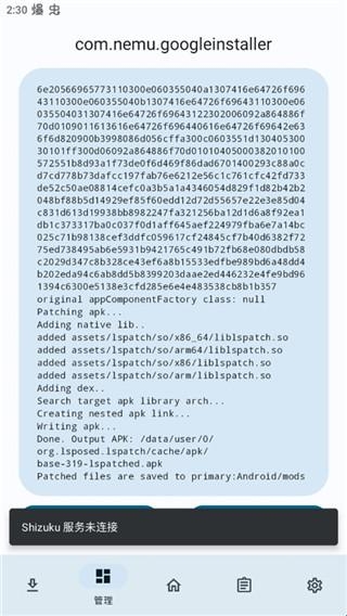 7、此时显示Shizuku服务未链接,这个时候卸载本地安装的应用。
