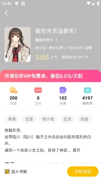 3、选择感兴趣的小说后可以了解到相关详情