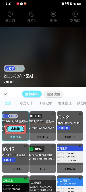 1、丰富的水印模板:内置了多种水印模板,涵盖了心情、人像、天气、地点、美食、时间等七大类百余款水印,用户可以根据自己的喜好和需求选择合适的模板。