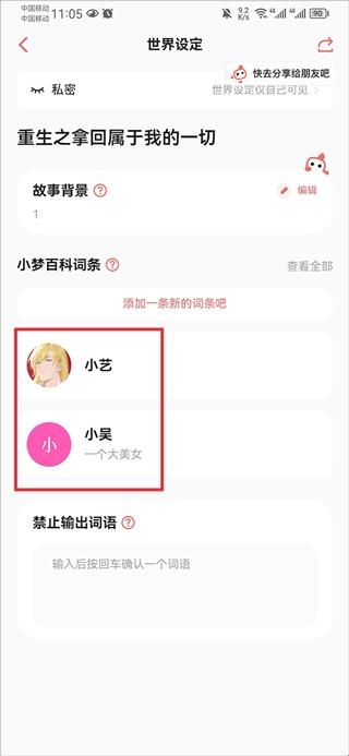 2、进入故事后,点击故事标题世界设定