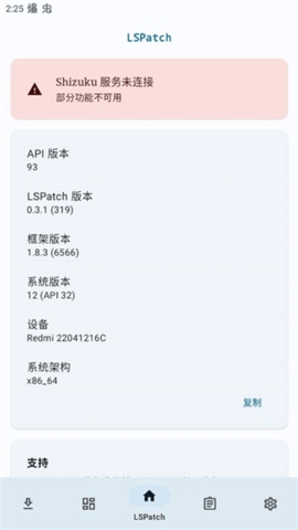 1、在lspatch模块列表中,长按任意模块并选择支持,以及框架和经理支持问题。