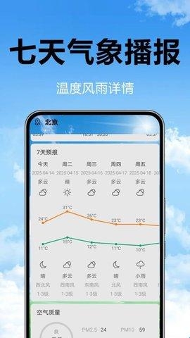 2、既可以实时天气的温度、天气状况、空气质量等数据,还可以查看7天预报的温度走势、天气变化及风力风向等。