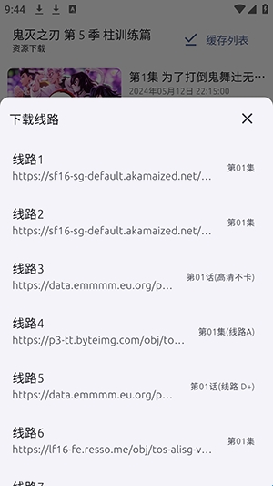 1、在动漫详情页面点击下方的下载功能。选择要下载的资源平台。