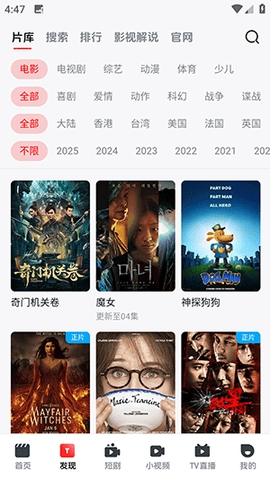 趣看视频是免费的追剧神器,软件上具有非常丰富的影视资源,按照题材、热度、地区、年份等关键词进行了很详细的分类,让每一位用户可以快速找到自己喜欢的影视资源,更新速度快,播放流畅画质高清,给用户带来优质的观影体验。