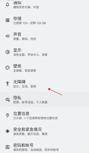 1、打开手机设置,找到并进入“无障碍”选项。