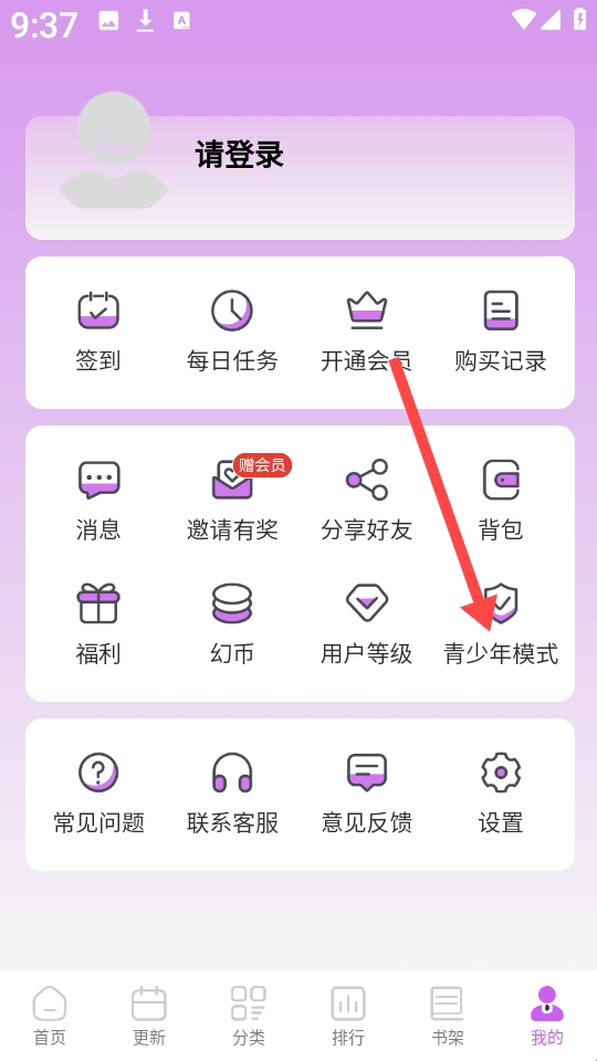 4、最后点击右下角“我的”,还可以一键开启青少年模式。