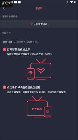 3、选择你要投屏的设备开始连接。需要注意的是智能电视需要与手机在同一网络环境。