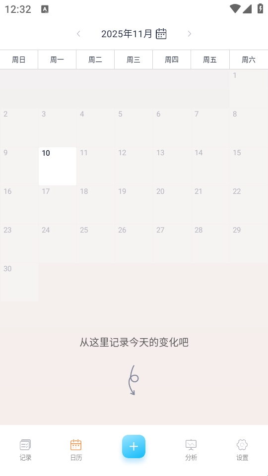 2、点击下方+号就可以进行记录;