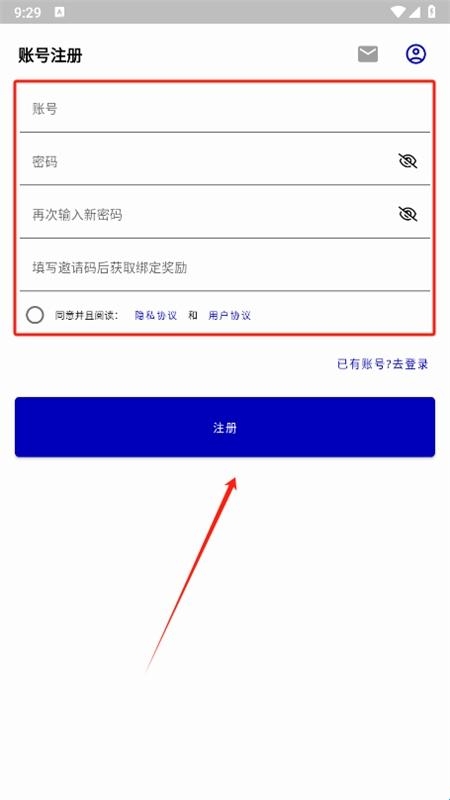 3、然后输入账号密码等信息,同意相关协议,点击注册即可