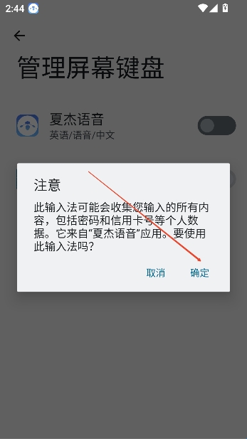 点击确定使用夏杰语音该输入法,然后重启就能够设置成功啦
