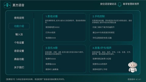 夏杰语音TV(夏杰语音)是款非常不错的语音助手应用,该软件支持海量影视、音乐、菜谱、电视频道的搜索与控制。用户只需通过语音输入完成一系列的操作,就能够搞笑的提高用户的使用需求,还提供了天气提醒、闹钟、语音搜索、语音对话等多个功能,无需遥控器就可以对电视进行远程控制,让用户拥有更加智能化的体验。