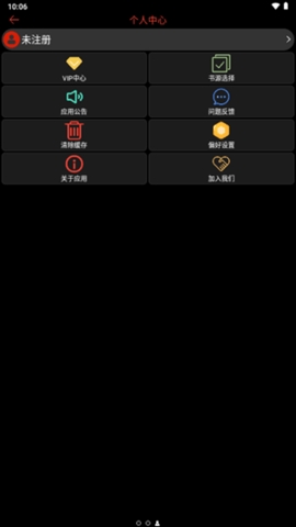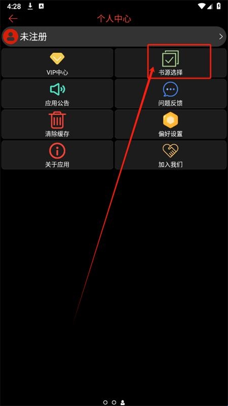 1、在个人中心页面,点击书源选择