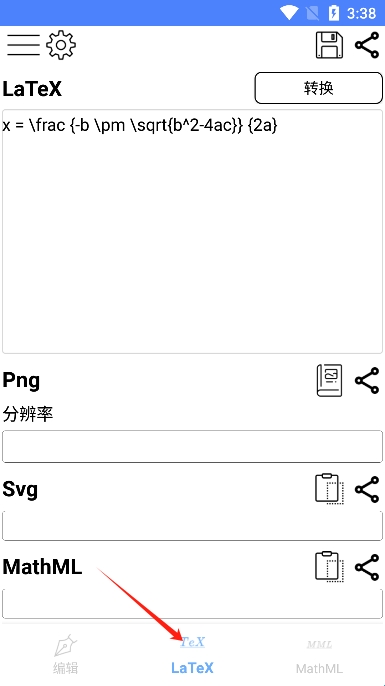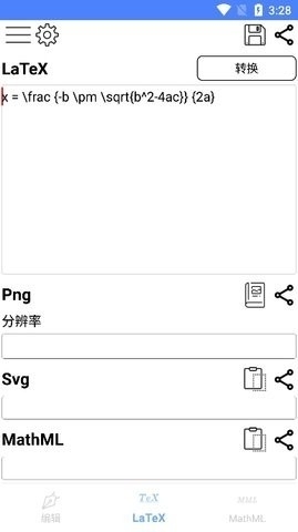 3、支持个性化导出设置,导出格式:Latex、Png、Svg、MathML