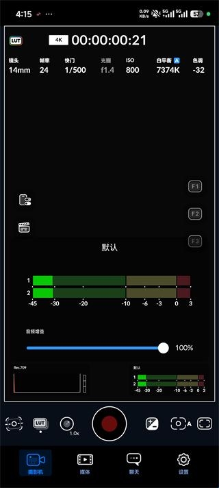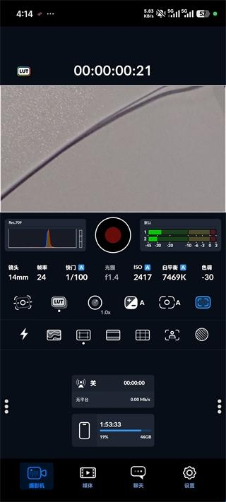 3、专业设置调整:允许用户调整帧速率、快门角度、白平衡和ISO等。