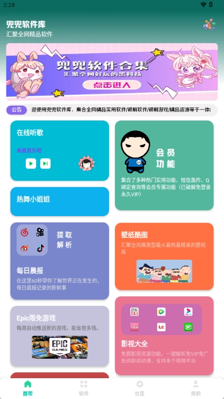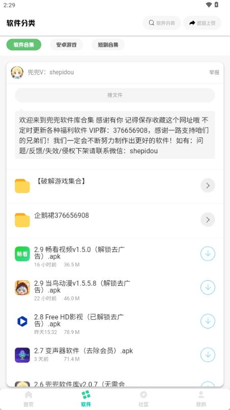 兜兜软件库是一款有着丰富资源的资源分享软件,软件上汇集了各种类型的软件,涵盖工具类、娱乐类、教育类、社交类等等软件,无论是MOD游戏,还是MOD软件,都可以在兜兜软件库中快速获取下载,有需要的用户抓紧时间下载吧!