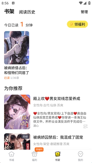 3.软件内置超大云端书架,喜欢的小说加入其中,畅想阅读乐趣