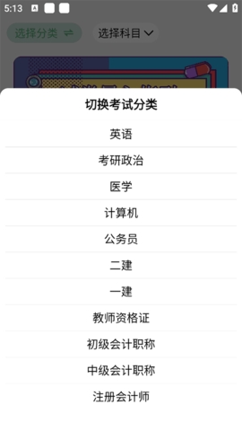 1、进入app后点击左上角的专业课程分类即可选择要刷题的专业课程