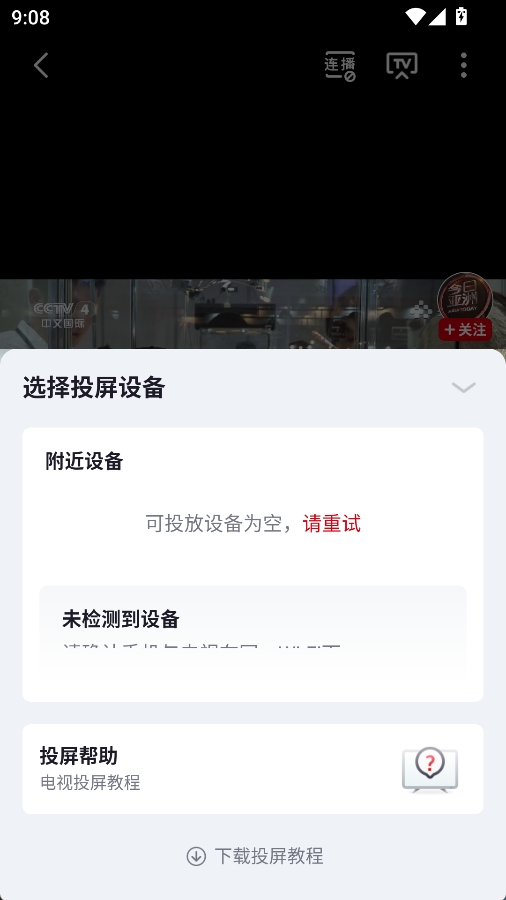 1、打开央视频App,确保手机与电视连接在同一网络环境下,并提前开启电视的投屏功能。
