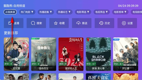 1、打开软件进入首页,点击上方换源