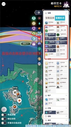 宝箱点位同时记录【宝箱品质】与【获取方式】。两种筛选方式无重叠,均可显示指定地区所有【宝箱、宝箱相关】点位