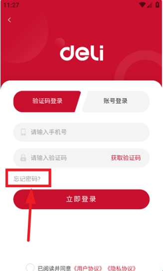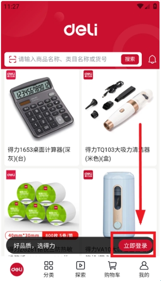 在本站下载安装并打开得力订货宝app,进入首页后点击立即登录;