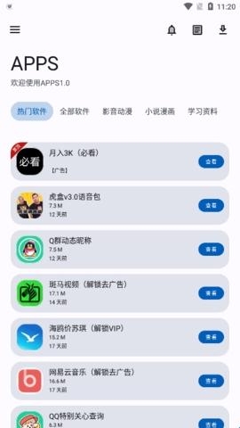 APPS软件库1.0(APPS):提供了在线下载各种应用游戏资源的软件。软件中每天都为用户更新全网的应用和游戏,用户可以选择自己喜欢的APP和游戏进行下载,不管什么版本的软件和游戏在这里都有收录,高速的下载通道,为用户提供便捷高效的下载环境。