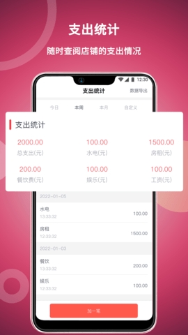 1、数据统计智能化:自动汇总各店铺的收入、支出以及会员情况,让您随时掌握经营状况。