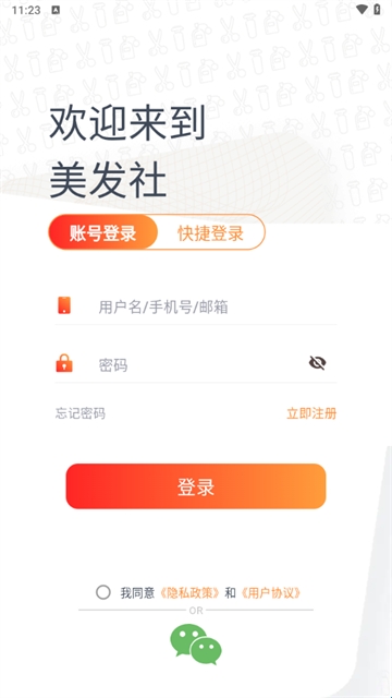 打开软件就有显示登录界面,可以选择注册账号登录,也可以直接用手机验证码登录,还可以使用第三方微信登录