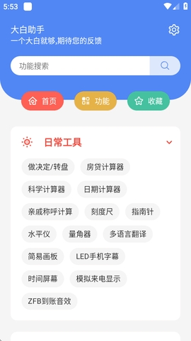 大白助手是一款可以免费使用的工具箱软件,软件给用户带来了丰富的工具,涵盖了日常工具、系统工具、图片处理、学习等等,用户在软件中可以随时随地使用自己需要的功能,感兴趣的玩家抓紧时间下载吧!