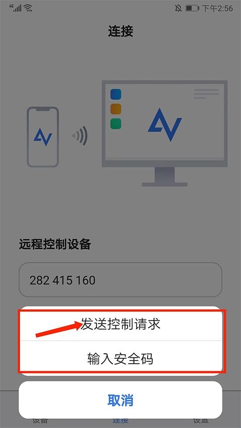 2、打开Anyviewer安卓版,将电脑端的设备ID号输入【远程控制设备】框中,选择【连接】选项,