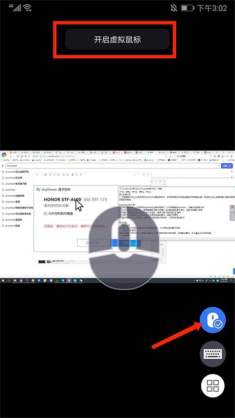 6、点击【鼠标】图标,可自行开启和关闭鼠标模式,在手机上滑动屏幕即可模拟鼠标操作了,