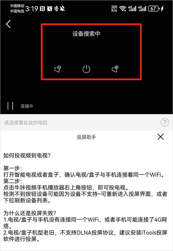 4、待搜索到投屏设备并连接后就可以播放啦